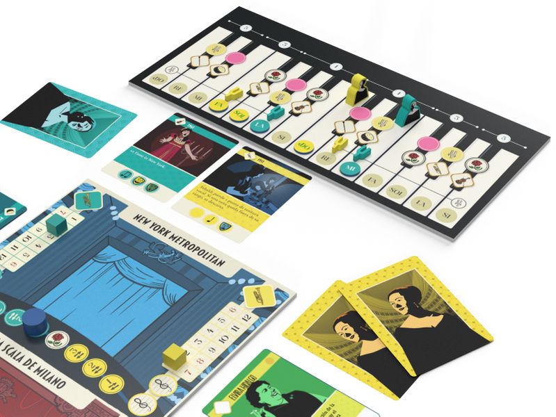 The game ends when five operas have been performed. At that point, players add up the points earned from theaters, the orchestra, the piano, and the timeline to determine who has left the most indelible mark on opera history. Will Callas overwhelming charisma or Tebaldis vocal perfection claim the ultimate glory? Only the stage will decide.