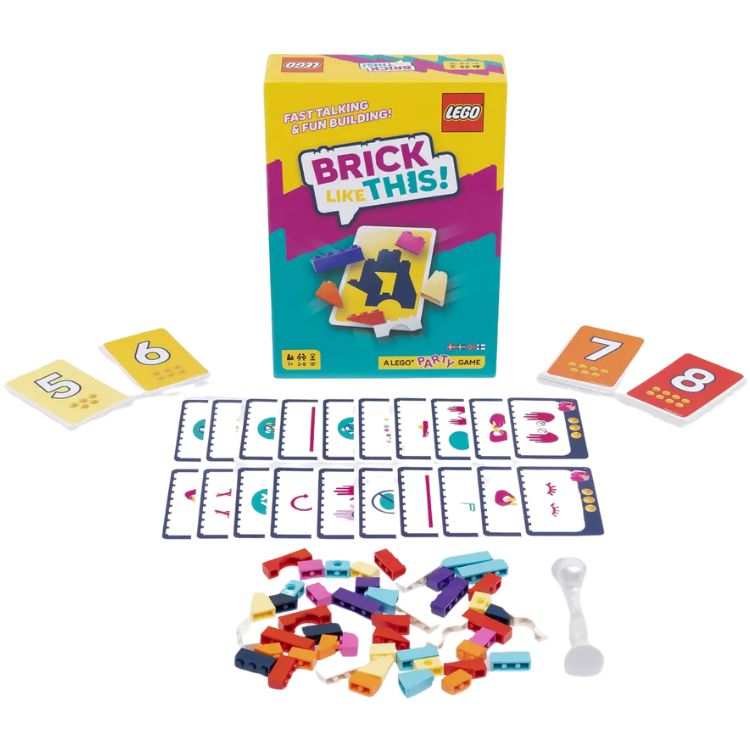 Utmaningskort ger extra spänning, till exempel att bygga med ena handen eller med slutna ögon. Med korta spelomgångar på cirka 15 minuter får alla möjlighet att delta i snabba och roliga rundor. Brick Like This! uppmuntrar till snabbhet, kreativitet och samarbete, och erbjuder många skratt och spännande tävlingsmoment där målet är att bygga modellen snabbast och samla flest poäng.