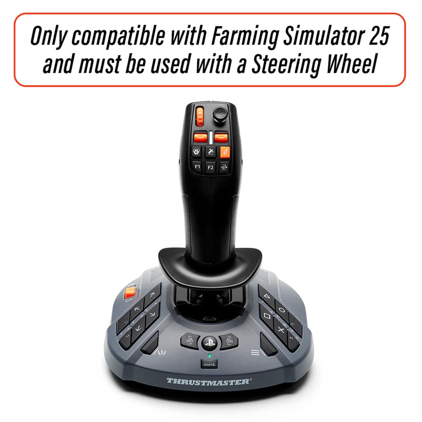 IMPORTANT: On PS5, the SimTask FarmStick is only compataible with Farming Simulator 25 and must be used with a steering wheel.