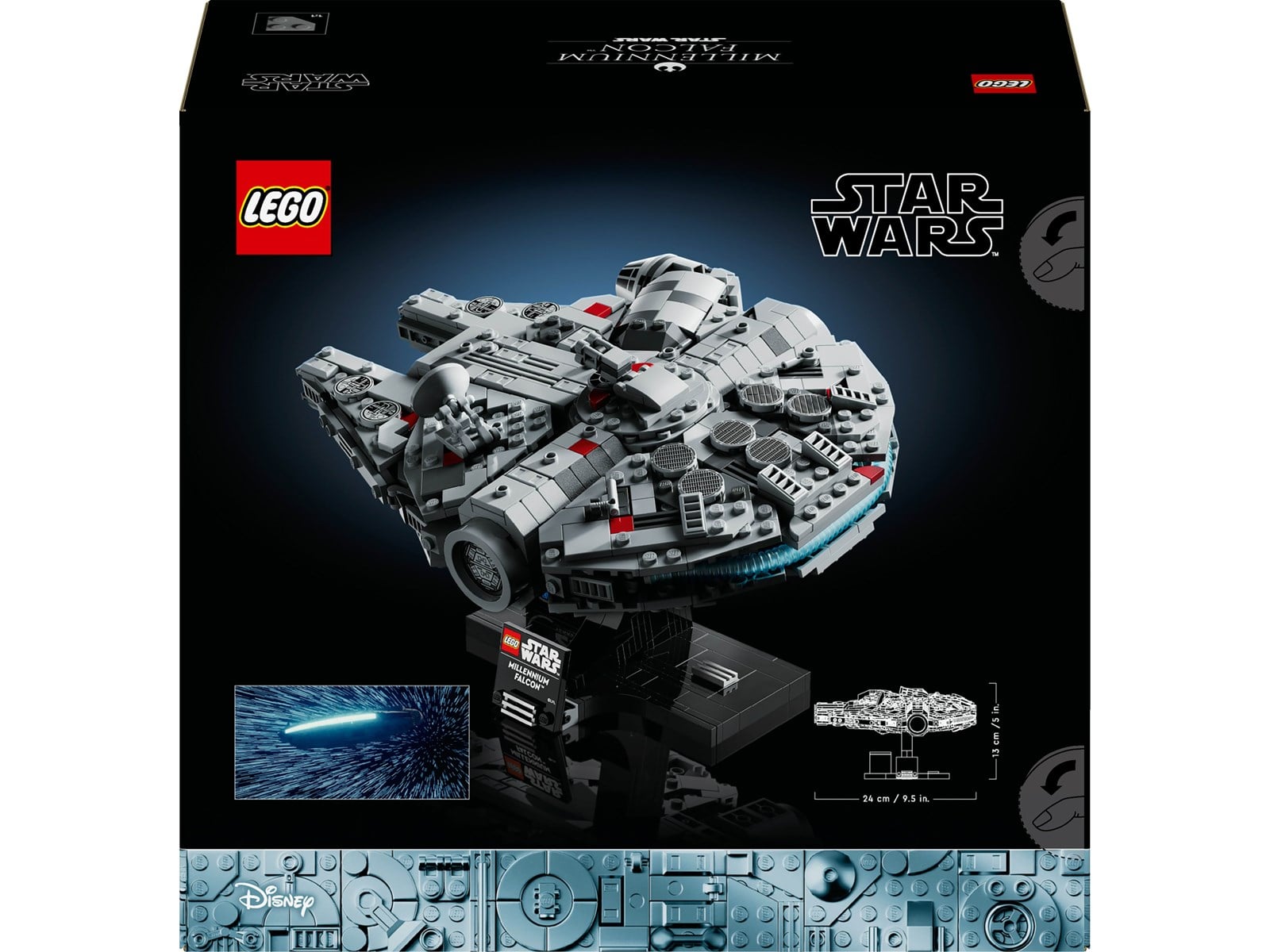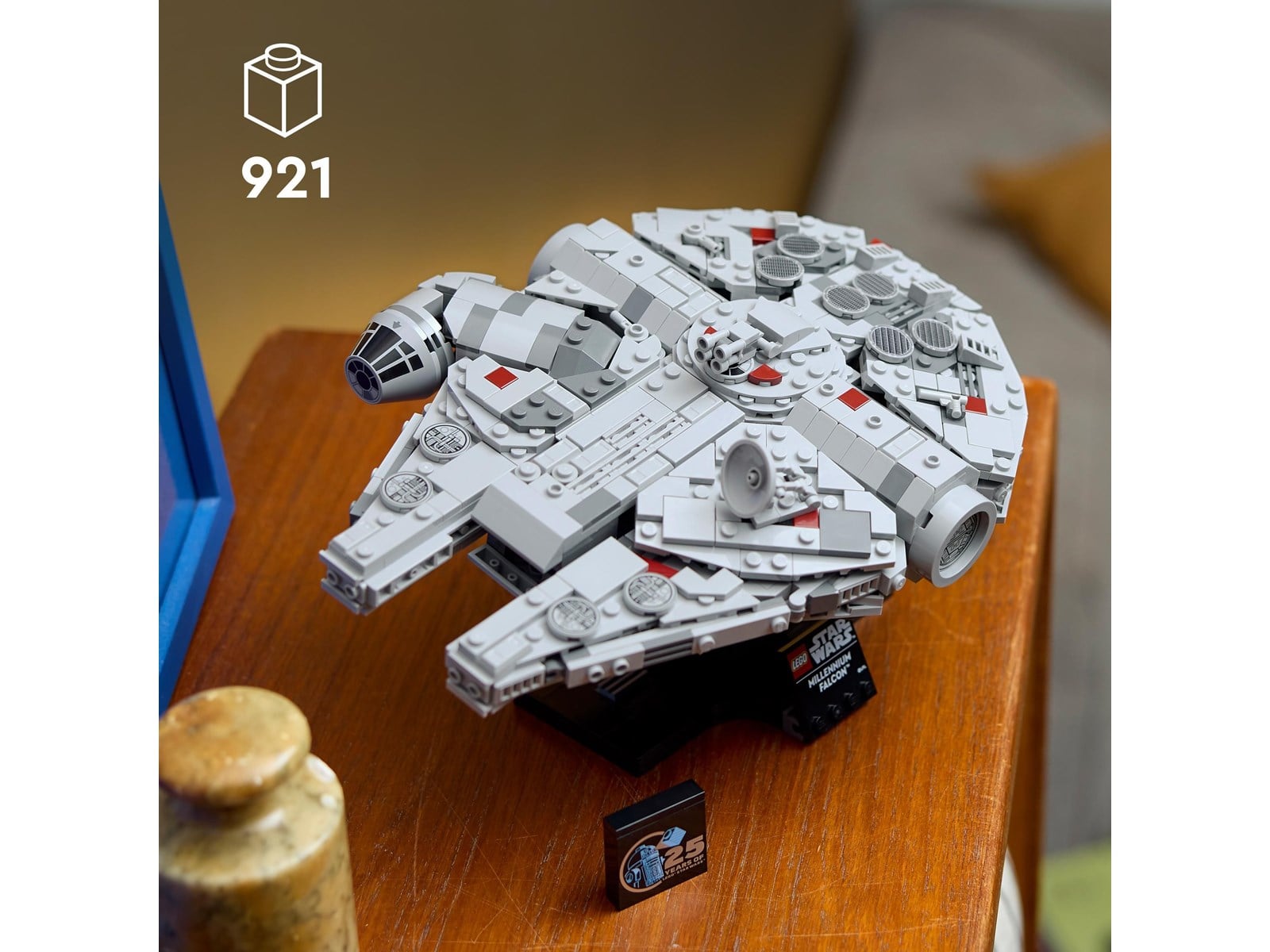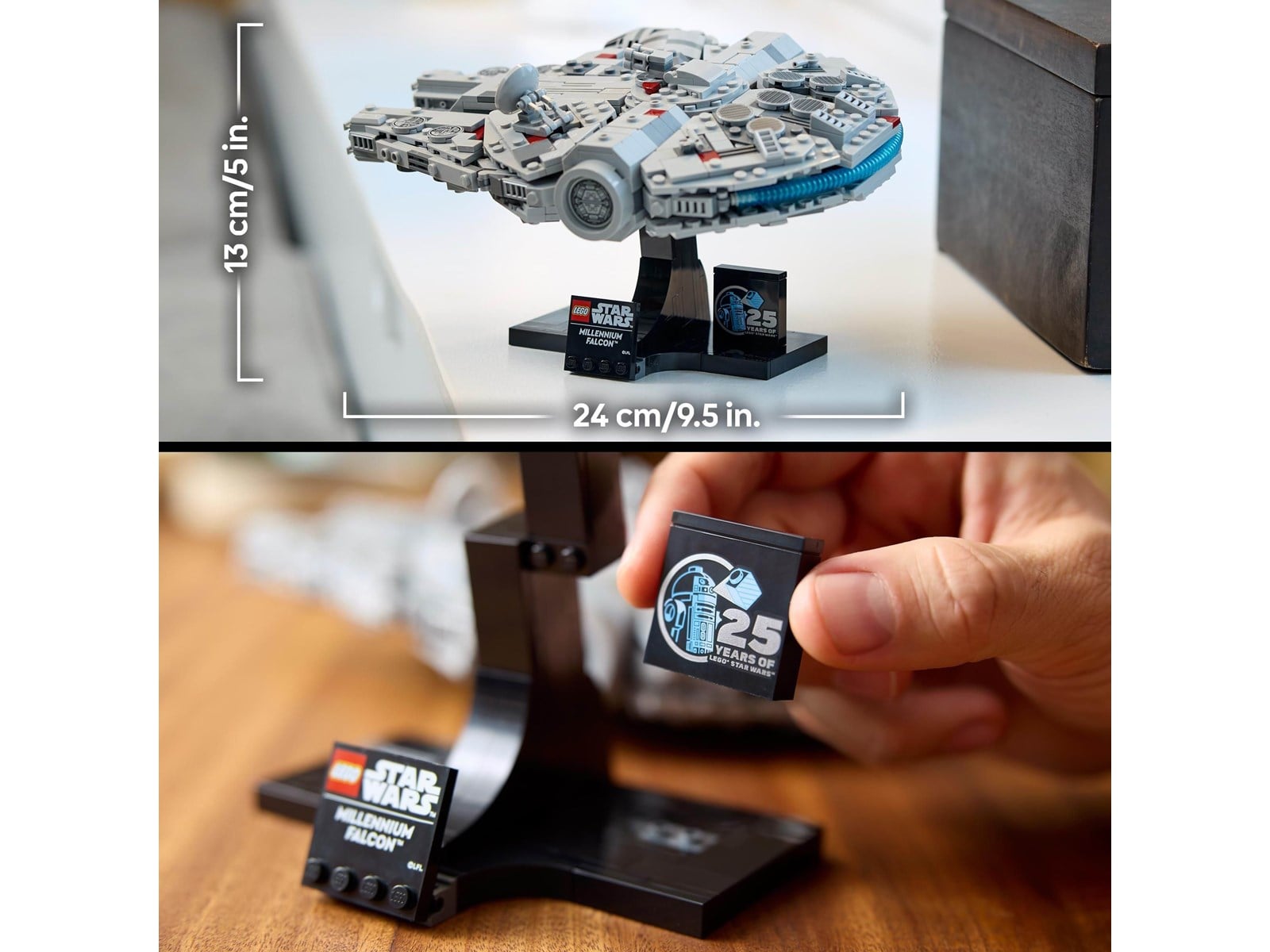 Med ett visningsställ som visar Millennium Falcon i en dynamisk vinkel