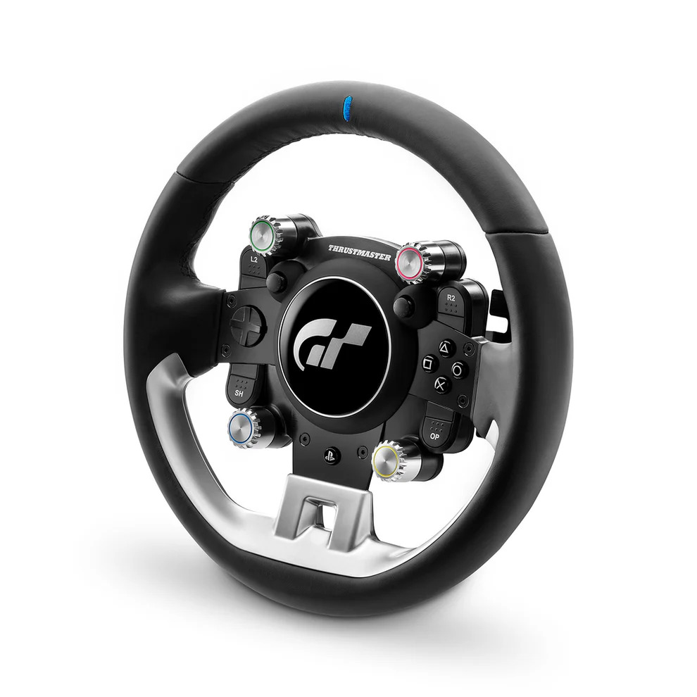 Successor to the iconic T-GT wheel rim, GT Wheel Add-On adopts the new next-gen Quick Release standard. It is now natively compatible with the T818 and T598 Direct Drive racing wheel bases without an adapter on PS5, PS4 and PC (Windows 10/11). Officially licensed by Gran Turismo, it offers a versatile driving experience and high-end GT sensations thanks to its round rim (11 inches / 28 cm in diameter) wrapped in fine, smooth-textured leather ensuring outstanding comfort, even during long racing sessions. Designed for performance, it features 4 metal rotary encoders, 2 mini-sticks, 2 metal paddle shifters and 4 tact-switch action buttons for precise, fast and intuitive control in every race.