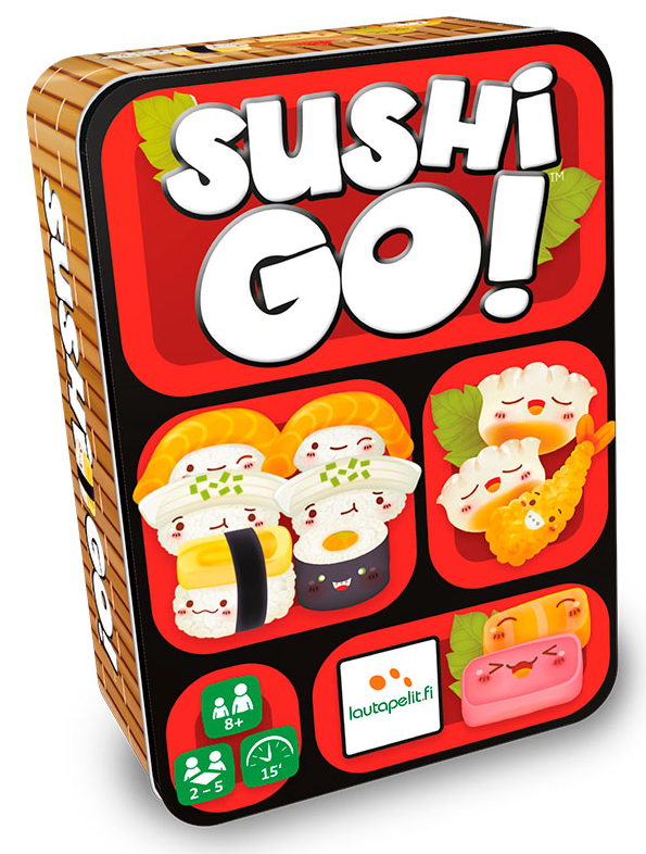 I Sushi GO är du på en livlig sushi-restaurang där du försöker sätta ihop den bästa menyn från de tallrikar (kort) som passerar. Med snabba val och charmiga sushi-illustrationer gäller det att samla rätt kombinationer för att få flest poäng ? utan att låta motståndarna sno de bästa bitarna!