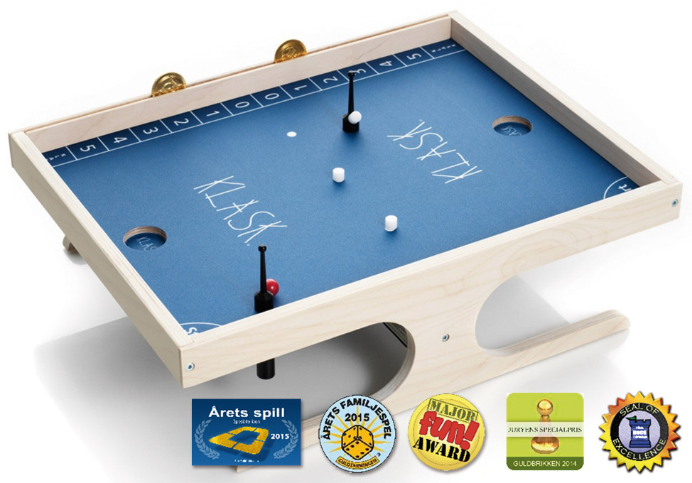 Place the game board on a table between the two players. Place the three white magnetic pieces on the white fields on the board. Put two coins in each point slot next to the 0. Each player has a black magnetic gaming piece in two parts. Place the short (thin) part on top of the board and the long (thick) part under the board in such a way, so the two parts catch each other. Place the ball in the corner start field. Steer it with the black gaming pieces.