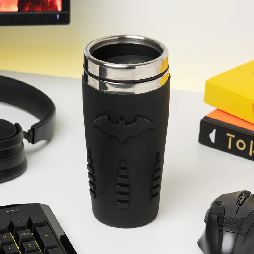 And now this sleek and stylish Batman Travel Mug is just the thing for when you too are out in the Batmobile. With its textured rubberised finish designed for maximum grip, youll always be ready for anything knowing your favourite brew is right on hand.