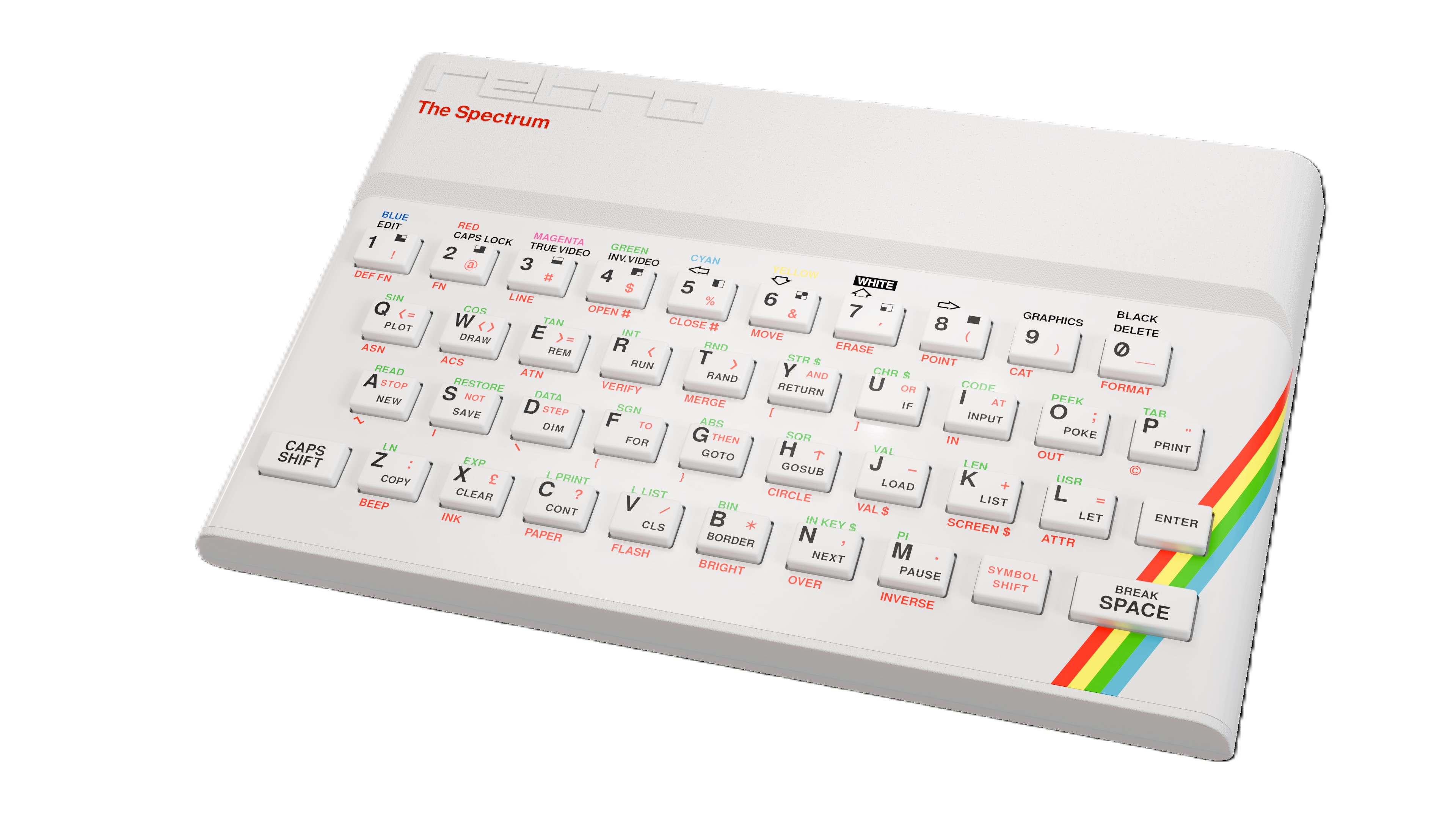 The Spectrum perfectly captures the essence of the original with a fully functional keyboard and emulation of the 16, 48 and 128K models. Pre-loaded with 48 genre defining games, such as Manic Miner, The Hobbit, Head over Heels, and The Great Escape, all easily accessible from a user-friendly carousel. Also play the games you own from a USB stick. Save your progress with four save slots per game, rewind at any point, or dive into the full ZX Spectrum experience, complete with BASIC programming and virtual cassettes.