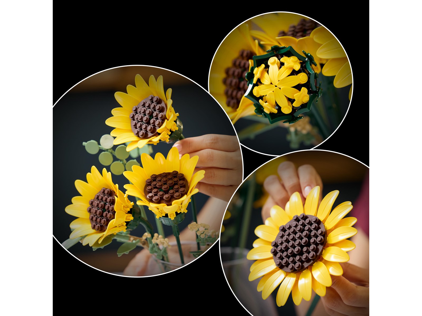 Buketten innehåller 6 LEGO® solrosor i olika blomningsstadier