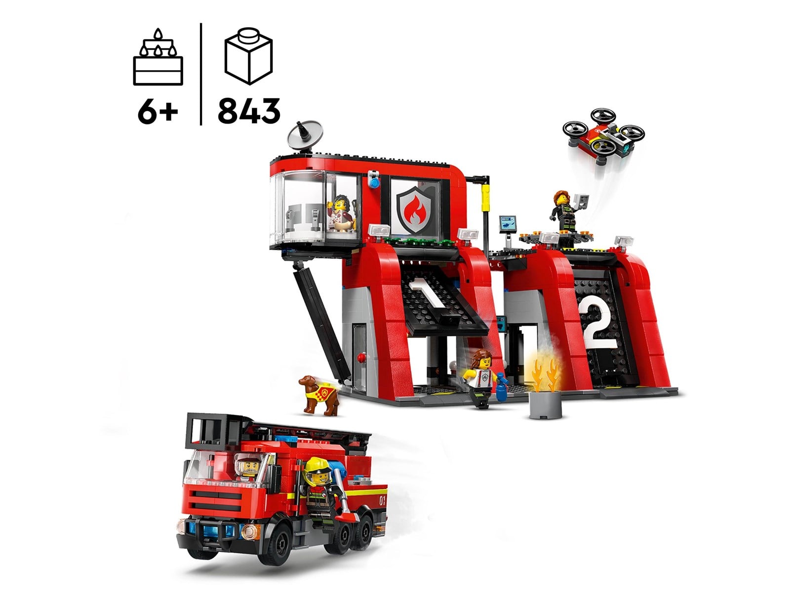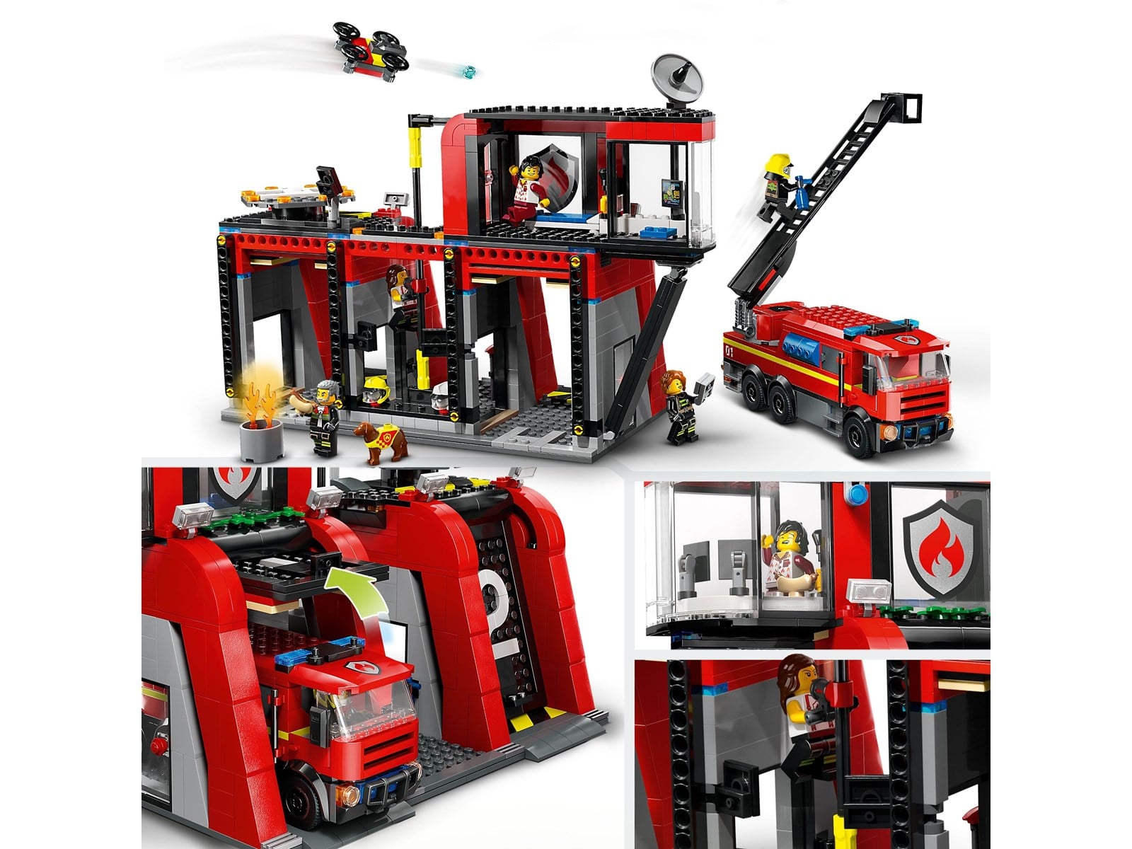 Brandstationen har 5 brandmansminifigurer och en brandhundsfigur