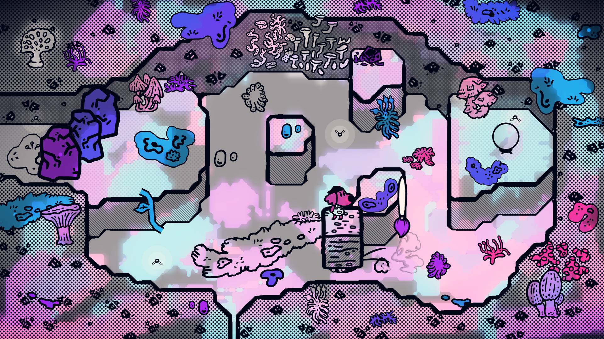 Solve puzzles and manipulate the environment with paint.