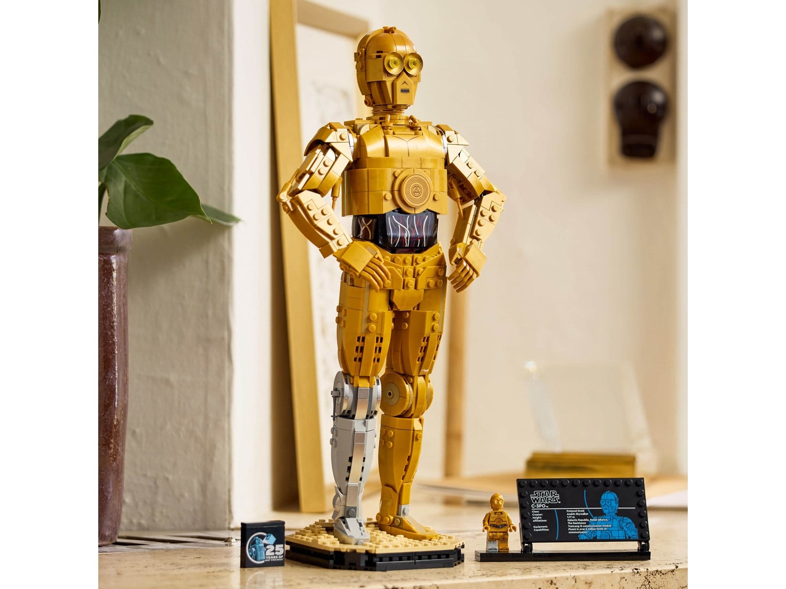 Den klossbyggda LEGO® droidfiguren av C-3PO är 38 cm hög