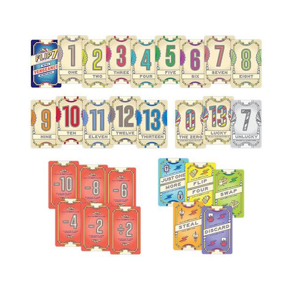 Flip 7: With a Vengeance bygger vidare på det enkla och beroendeframkallande systemet från originalet, men skruvar upp både spänning och spelarinteraktion. Resultatet är ett snabbt kortspel där tur, timing och modet att ta chanser avgör vem som går segrande ur spelet.